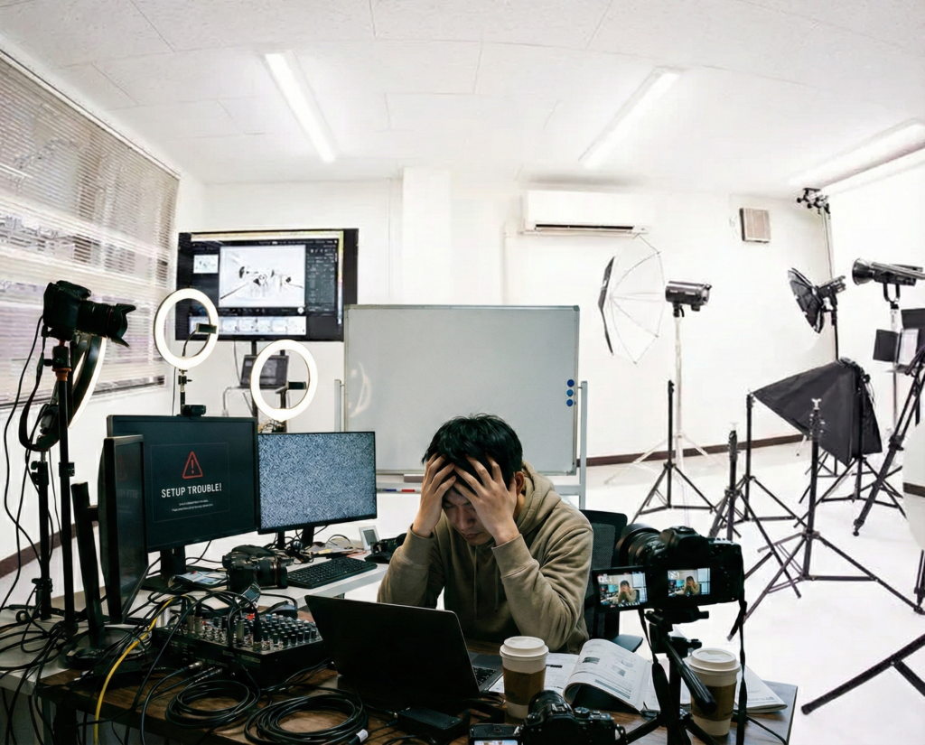 ライブ配信やYouTube配信の品質は、機材選びとセットアップで決まります。大阪・西中島の撮影スタジオCrit Labでは、多くの配信者が「音声がこもっている」「映像が暗くなる」といった悩みを抱えて相談に来られます。しかし、正しい機材と設定方法を知ることで、この問題はほぼ確実に解決できるのです。 私たちのスタジオでは、これまで100社以上のライブ配信をサポートしてきました。その経験から、音質と画質の両方をプロ仕様に高めるセットアップ法を、初心者にもわかりやすくお伝えします。 🎥 ライブ配信の成功は、機材選びと環境づくりで9割が決まります。視聴者の離脱理由のトップは「画質が悪い」「音声が聞き取りにくい」といった技術的な問題です。だからこそ、最初の投資を正しい機材に注ぎ込むことが、長期的な配信成功の鍵となるのです。 🎤 なぜ音質と画質の両立が重要なのか ライブ配信では、視聴者が最初の10秒で視聴を続けるかを判断します。その判断基準の50%以上が「音声の聞き取りやすさ」と「映像の鮮明さ」です。たとえ内容が素晴らしくても、音が小さい、映像がぼやけている、といった基本的な問題があると、視聴者は即座に他の配信へ移動してしまいます。 特にYouTube撮影やライブ販売では、購買行動に直結するため、音質と画質の改善は売上向上に直接影響します。新大阪周辺でライブ配信スタジオを探されている事業者様の多くが、このポイントを見落としています。 🌟 プロ仕様のセットアップとは「音量が適切で、声が明確に聞こえ、映像は明るく、色が正確に再現される状態」です。これは特別な高級機材がなくても実現可能です。重要なのは、正しい知識と配置方法なのです。 📊 ライブ配信に必須の4つの機材カテゴリ 1. カメラ・映像機材 ライブ配信にはミラーレスカメラやコンパクトカメラが最適です。スマートフォンを使う場合も多いですが、一定時間の配信には放熱対策が必要になります。大阪の撮影スタジオでは、配信内容に応じて複数カメラの同時運用も対応しています。 📷 おすすめカメラの選択基準: ・Sony α6400(初心者向けで高画質) ・Panasonic Lumix S5(フルサイズで本格的) ・スマートフォン(コスト重視の場合) 重要なのは「4K対応」ではなく「1080p60fps以上の安定配信」です。多くの初心者が4K機