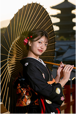 祇園・東山・嵐山・鴨川・平安神宮付近など、京都ならではの和と風情ある景観を背景に撮影が可能。