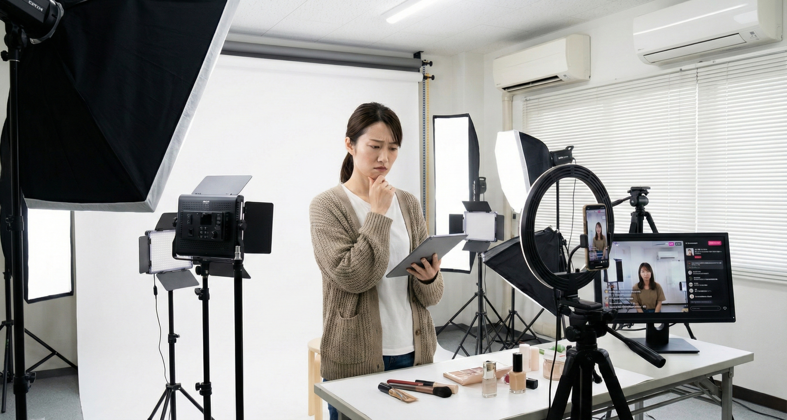 私たちCrit Labは、これまで多くのEC事業者をサポートしてきました。その中で最も多く聞かれるのが「照明が難しい」「背景がごちゃごちゃして見える」「ライブ配信の音声・映像品質が悪い」という悩みです。