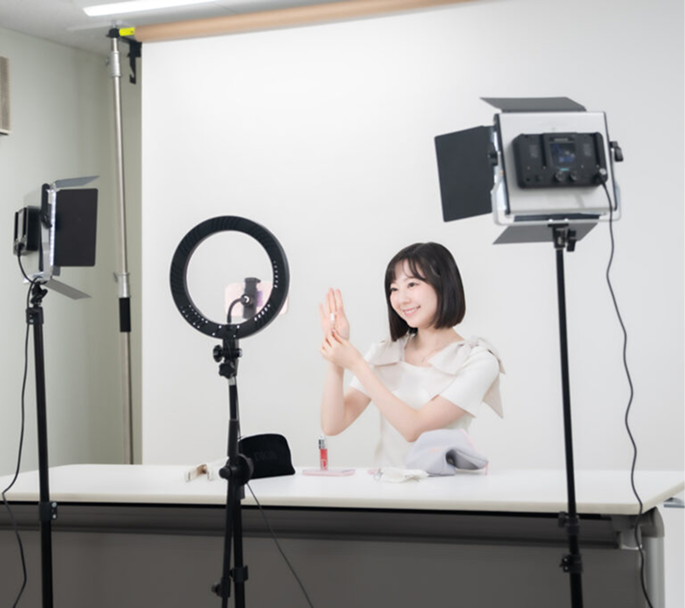 人物も商品も美しく映えるライティング環境で、見栄えのいい配信が可能。