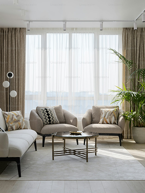 家具配置と照明調整で室内を広く見せる技術。 不要な物を隠し、生活感のある温かみを演出します。