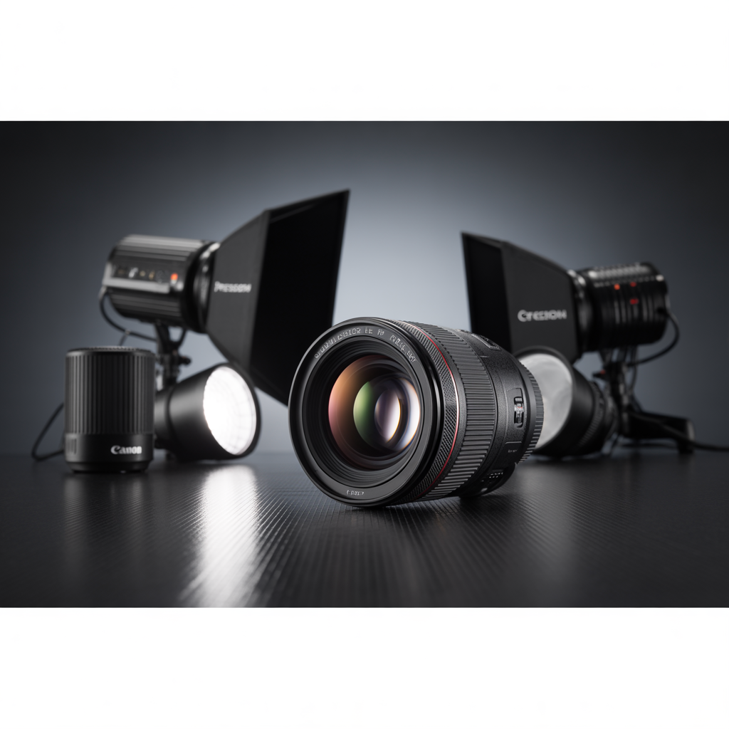 ストロボ、リフレクター、ディフューザーなど、光をコントロールする専用機材で、どんな条件下でも美しい仕上がりを実現します。